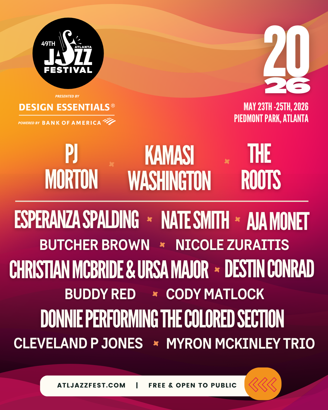 (Black PR Wire) Atlanta, GA — One of the nation’s largest FREE jazz festivals is back, and it’s ready to set Atlanta on fire. The 49th Annual Atlanta Jazz Festival returns to the iconic Piedmont Park, celebrating culture, community, and the timeless power of jazz in the heart of Atlanta. Presentedm by Design Essentials and powered by Bank of America, this Memorial Day weekend tradition takes place Saturday, May 23 through Monday, May 25, from 11 a.m. to 11 p.m. daily, with live performances lighting up the stages from 1 p.m. to 11 p.m.