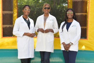 Photo 3: From left, Dr. Lashunda Collins, DDS; Dr. Deborah George, DDS, executive vice president and chief dental officer; and Dr. Ashley E. Reid, DDS, of Jessie Trice Community Health System at Give Kids A Smile Day, recently held at the JTCHS Corporate Office Complex. (Photo by Audrey LaPalme, Sonshine Communications).