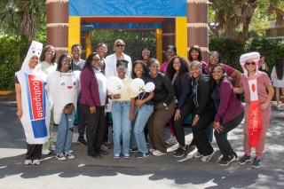 Photo 5: A young patient poses with Jessie Trice Community Health System staff and volunteers during Give Kids A Smile Day, where uninsured children received free dental and vision services. (Photo by Audrey LaPalme, Sonshine Communications).